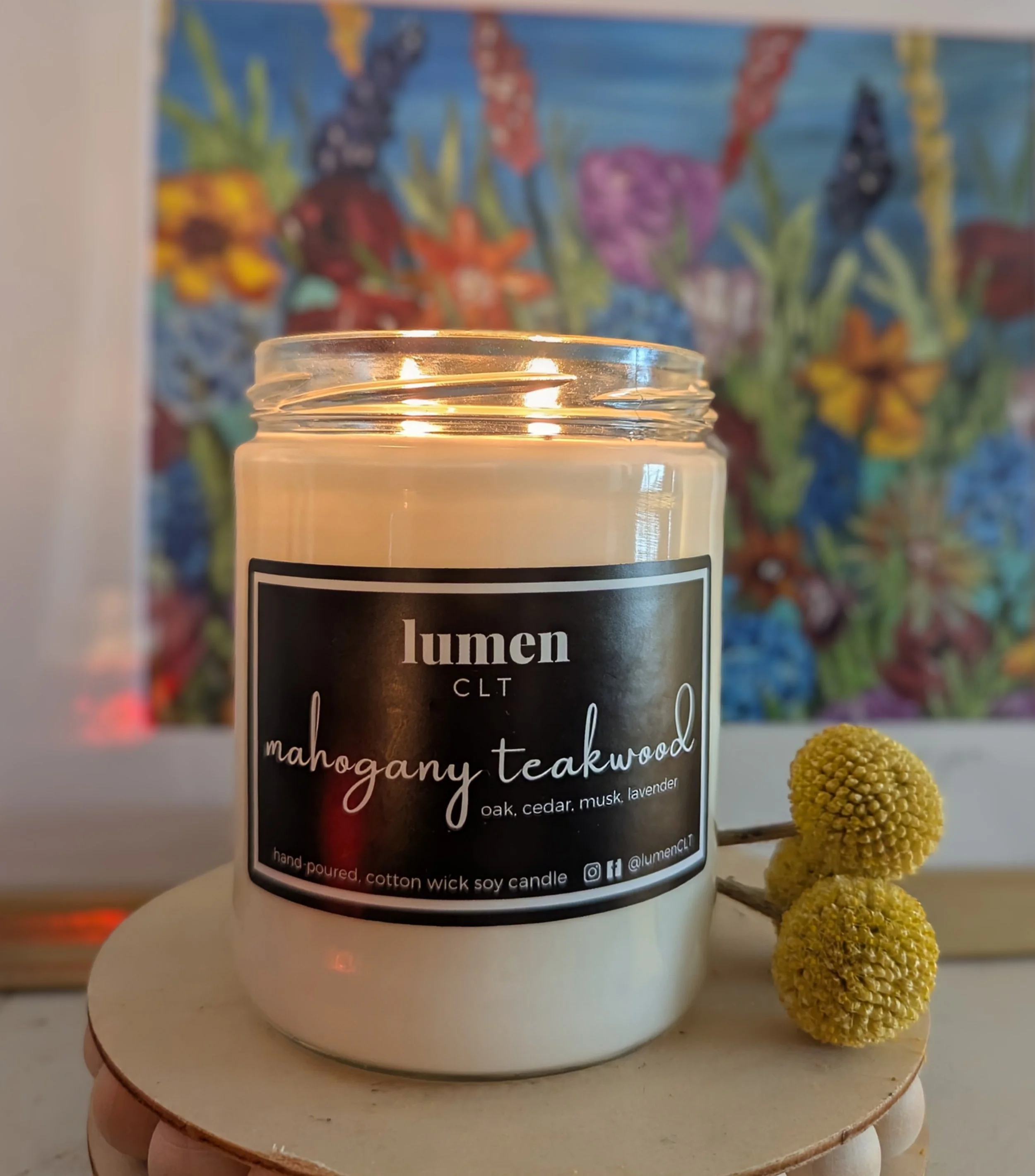 All lumen candles are phthalate-free, paraben-free and made with 100% soy wax. Always trim wicks to 1/4” before relighting (yes, every time!). Recommended burn time is 3 hours per burn. Only burn candle on a level, fire-resistant surface. Discontinue use when 1/2” of wax remains. Keep candles away from children and pets.